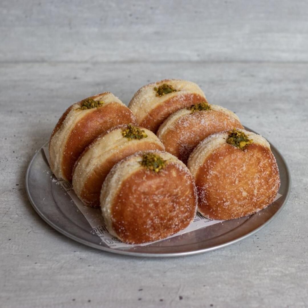 Brioche doughnuts filled with Italian Pistachio cream.