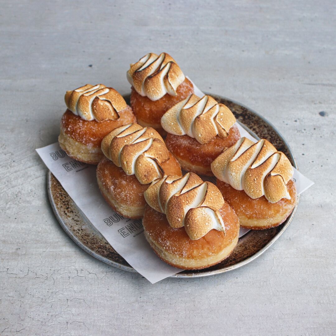 Lemon Meringue Doughnuts filled with Lemon Curd.