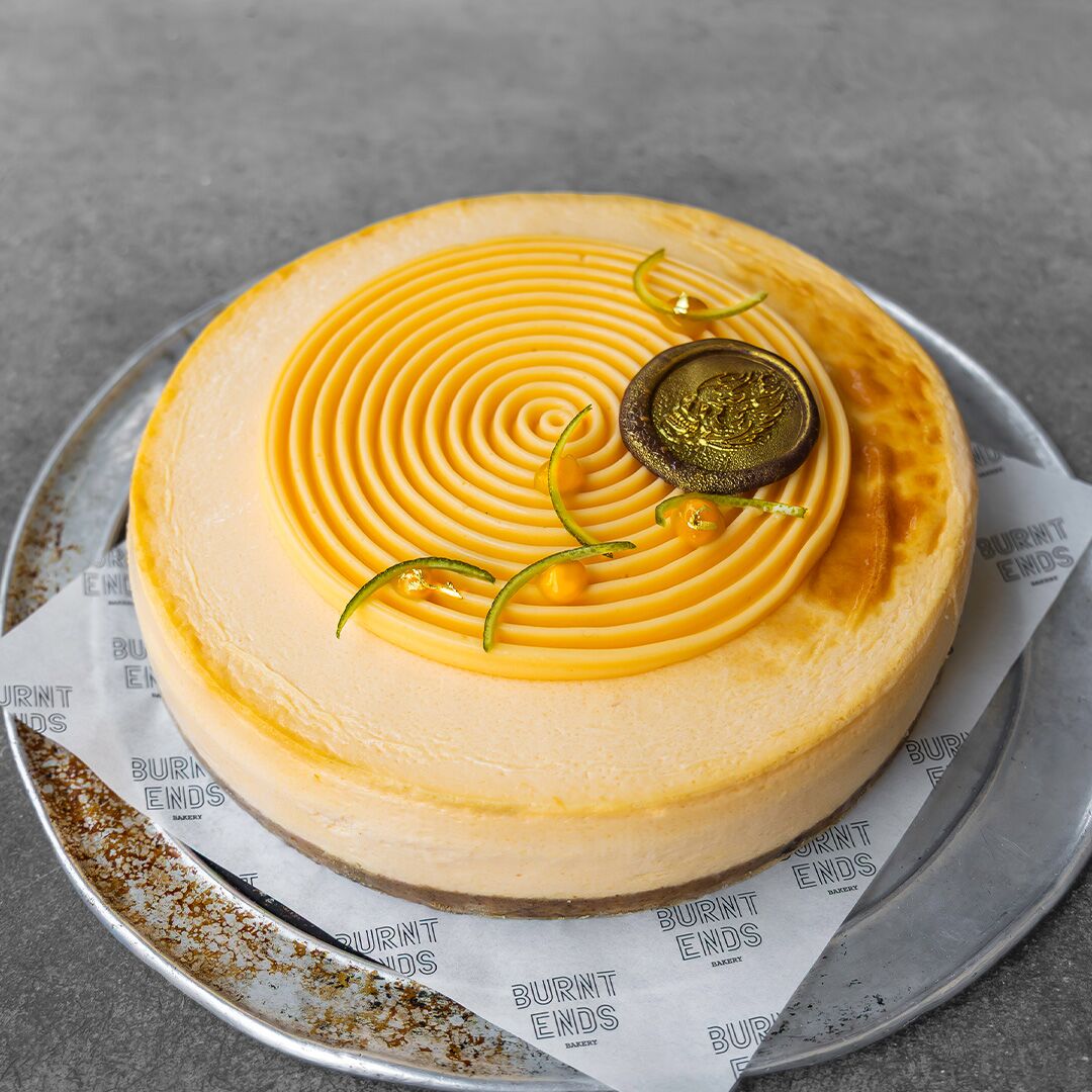 Baked Cheese Cake On Macadamia Crust, Filled With Flavourful Mango And Topped With Fresh Calamansi Curd.