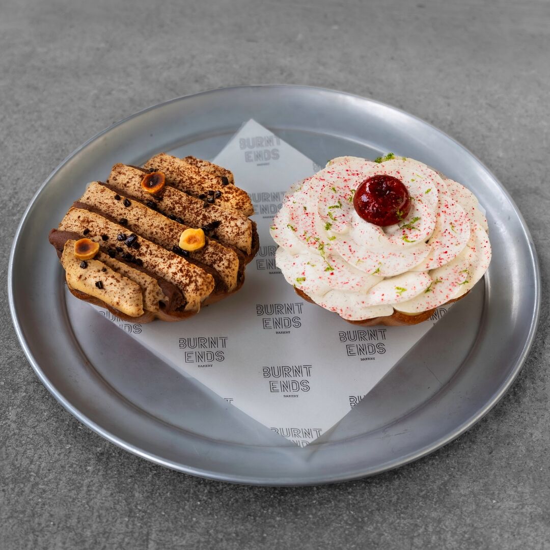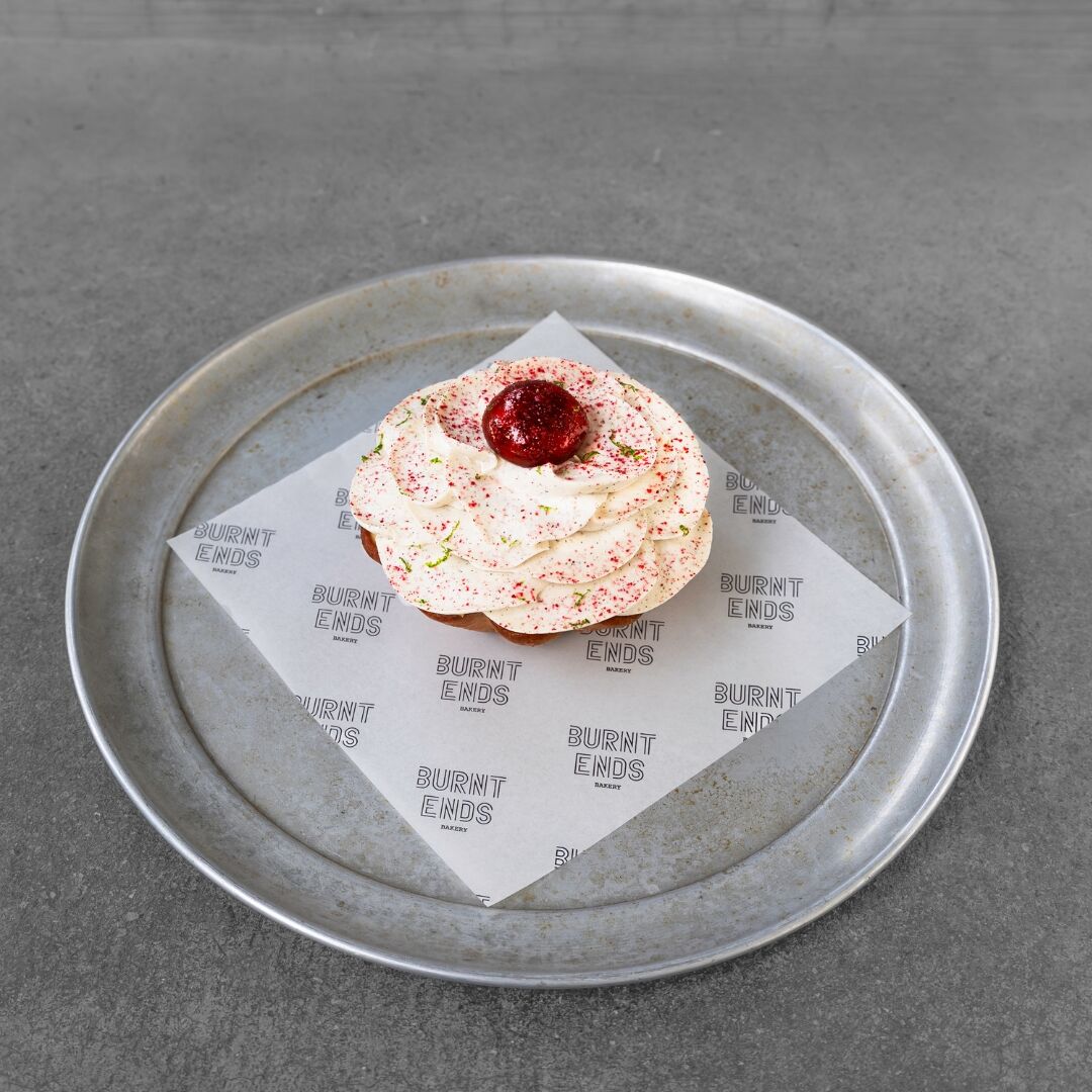Mint and Strawberry Tart – Mint Infused Strawberry Compote, Ladyfinger Sponge, Vanilla White Chocolate Whipped Ganache, Pastry Cream, Strawberry Mint Gel.