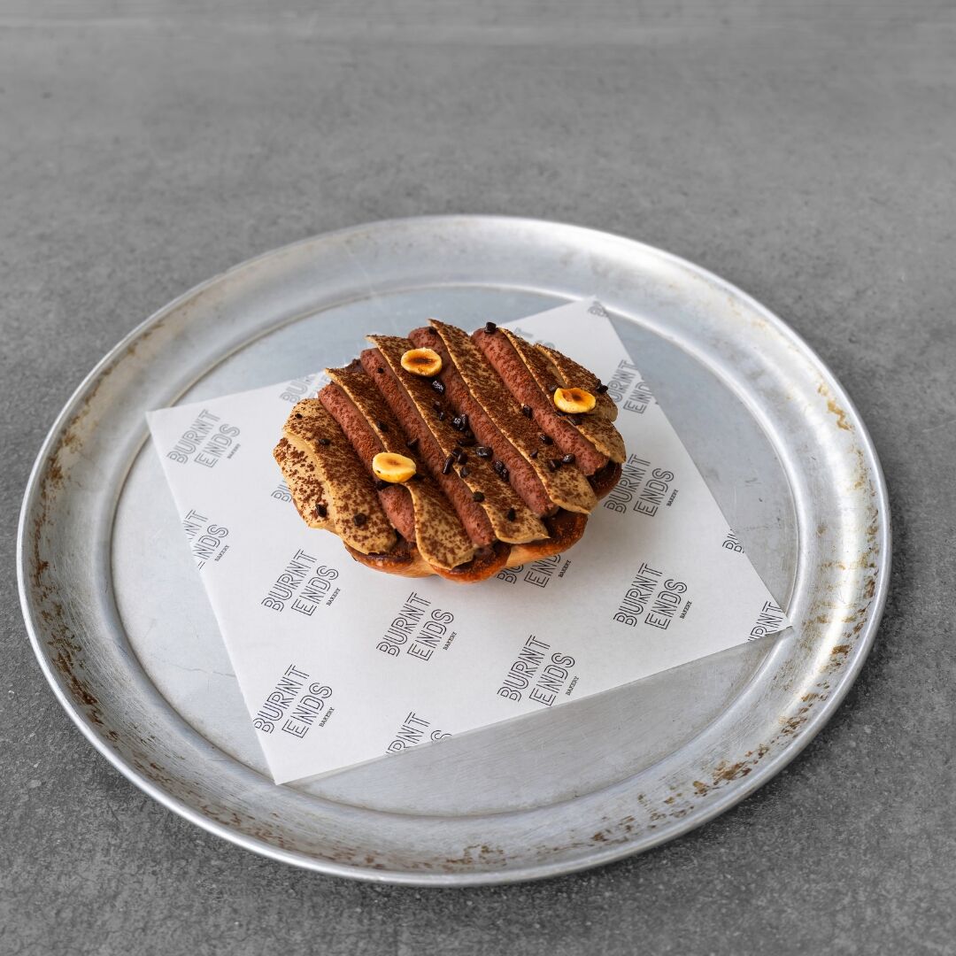 Hazelnut, Coffee Chocolate Tart – Coffee Whipped Ganache, Milk Chocolate Ganache, Sponge Soaked with Coffee Syrup, Hazelnut Praline Feuilletine, Chocolate Soft Cremeux.